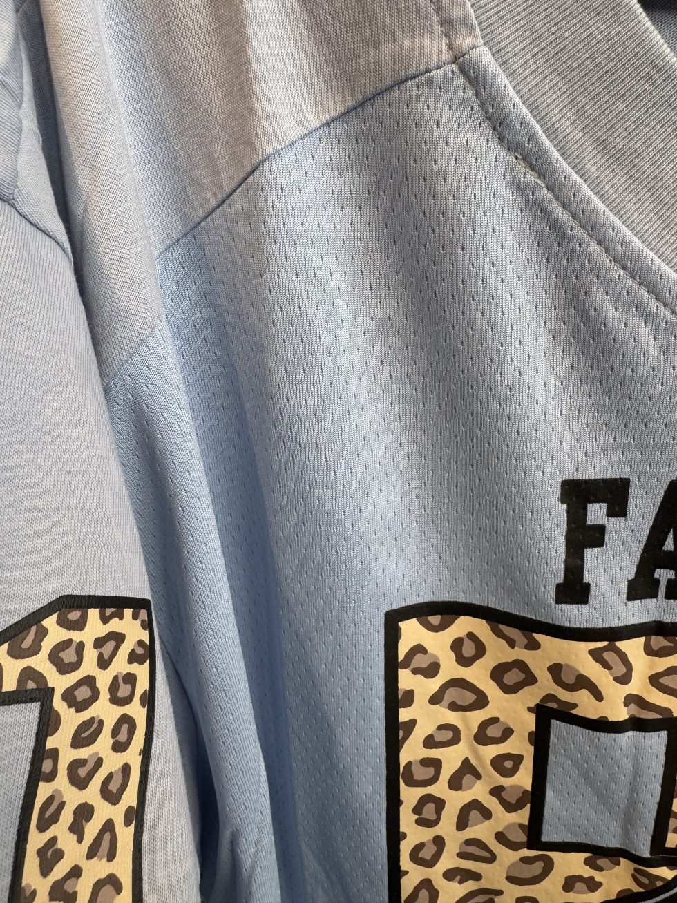 De voorkant is afgewerkt met een opvallende “91” fashion print met leopard detail, wat het shirt een speelse en trendy uitstraling geeft. De kanten afwerking aan de mouwen voegt een subtiel vrouwelijk accent toe en maakt het ontwerp net even anders.