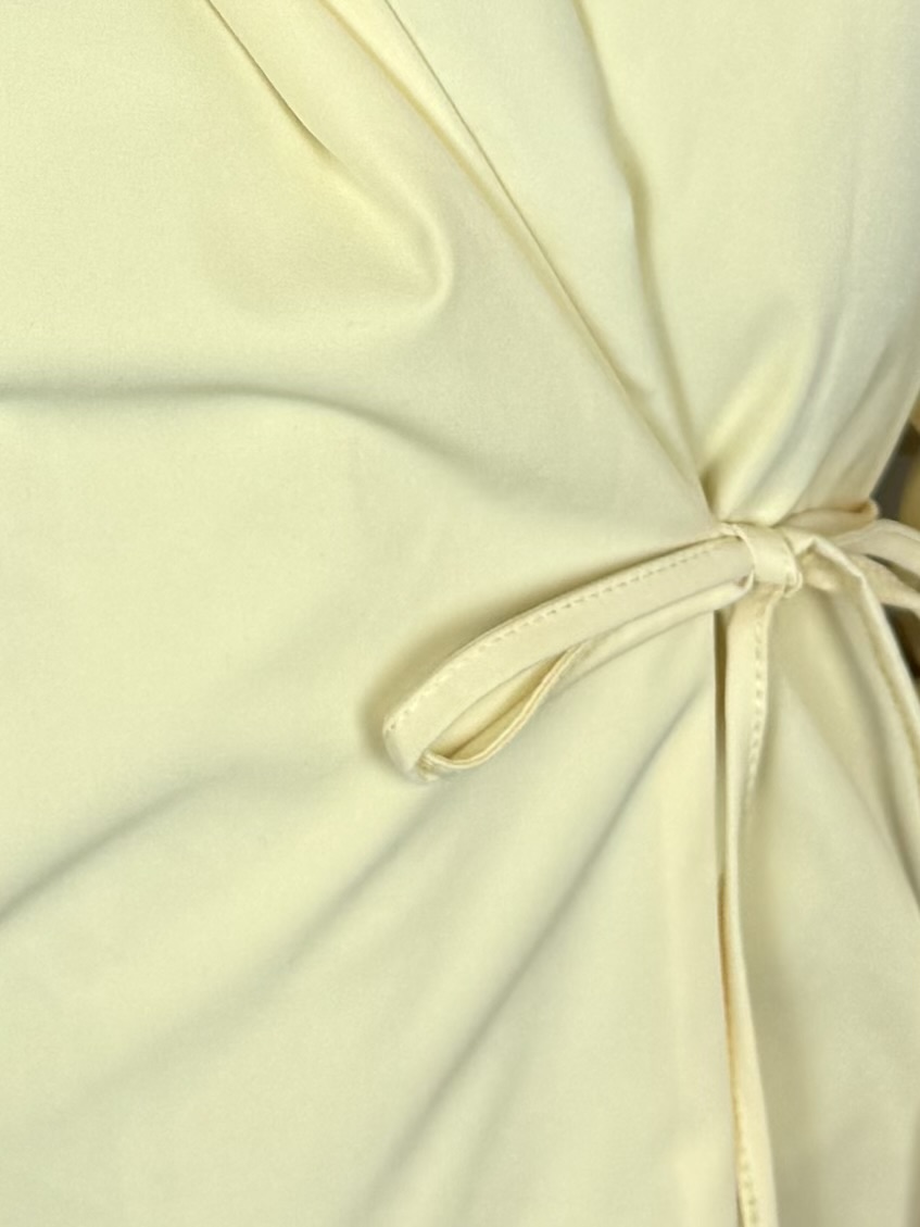Superleuk te wikkelen met de strik aan de zijkant, waardoor je ‘m mooi kunt tailleren. En met de elastische bandjes bij de mouwen kun je spelen voor een subtiel pofeffect. De lengte is precies goed: comfy, stijlvol en makkelijk te combineren.