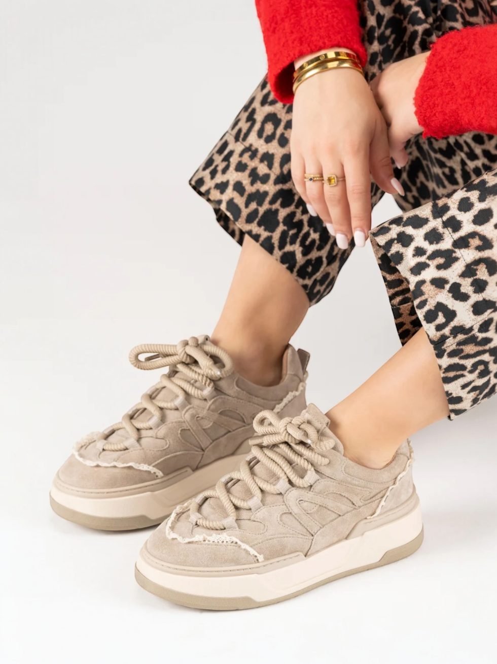 De Walton sneaker met crochet is nieuw bij DWRS. Een sneaker met een hoge / dikke zool als dit model is een must in je schoenenkast. Deze sneaker voor dames is aan de buitenzijde van suede en de binnenzijde is volledig van leer. Met de dikke veters door de schoen val je zeker op! Doe jij mee met de trend?