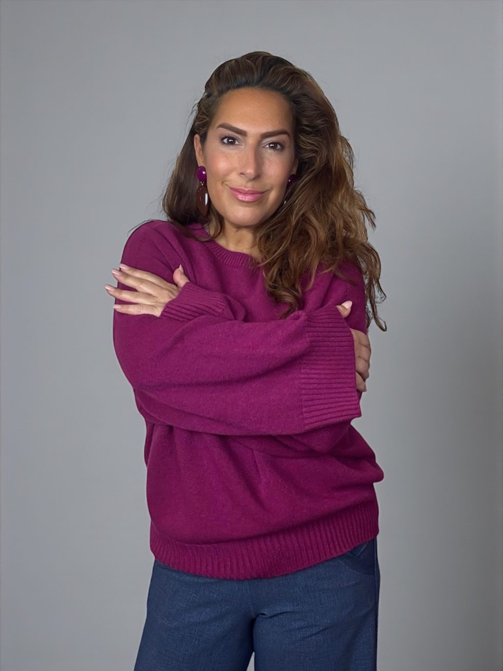 De iets wijdere mouwen geven de trui een speelse, moderne uitstraling. Draag hem casual op je favoriete jeans of joggingbroek, of combineer hem klassiek met een pantalon voor een stijlvolle, effortless look.