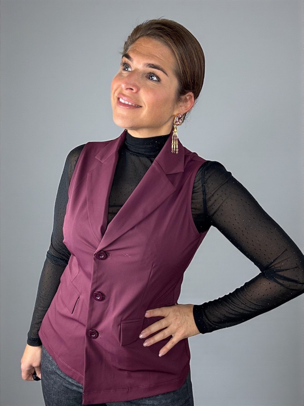 Het Gilet Angelique van Zoso is een stijlvol mouwloos jasje met reverskraag, knoopsluiting en klepzakken. Gemaakt van comfortabele, kreukvrije travelkwaliteit. Perfect voor een casual of zakelijke look.